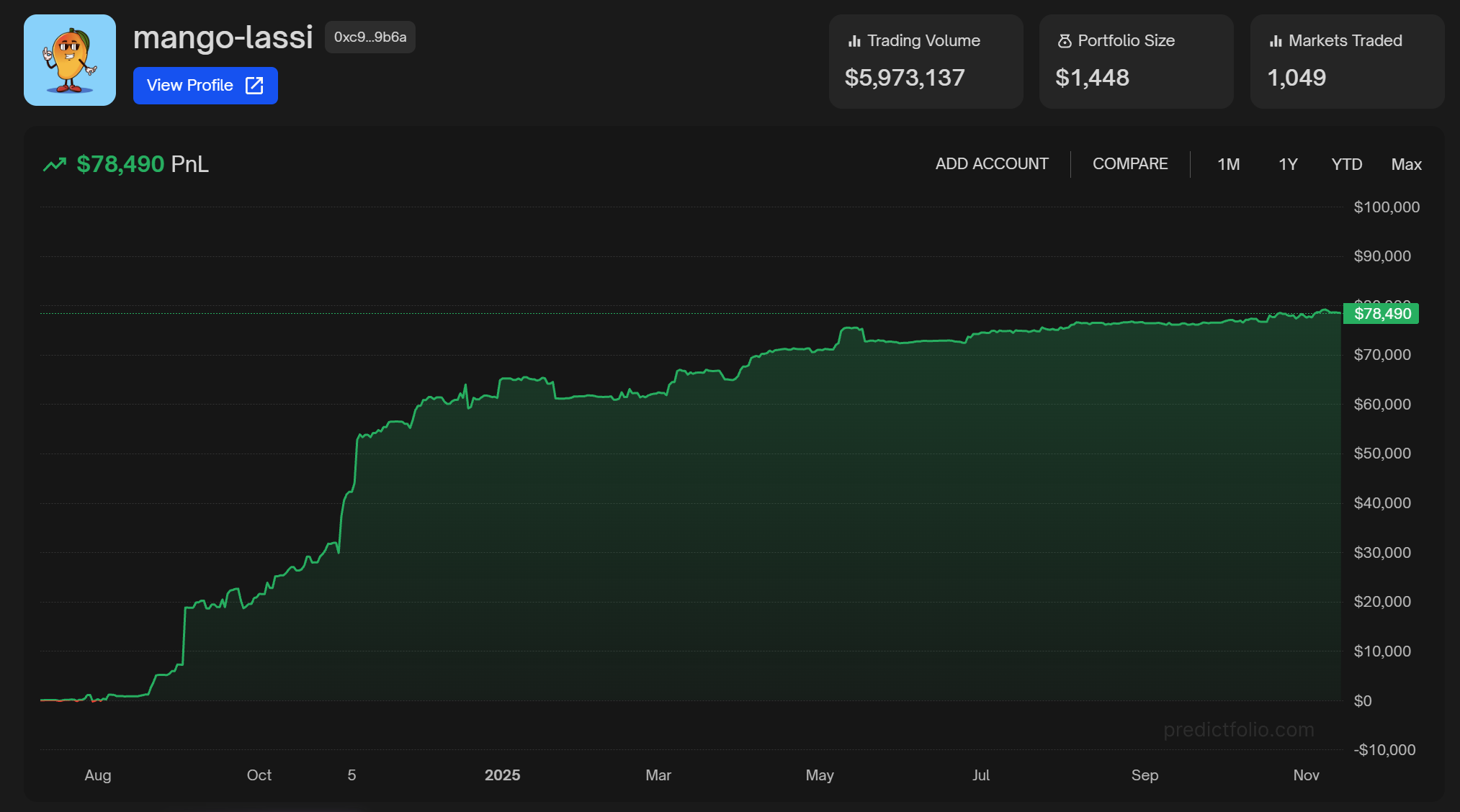 Most of my profits come from mention markets. I have earned roughly $70,000 from them alone. I especially like Trump mention markets because his speech patterns are so unpredictable. He can spam his favorite words like "border" at any moment and sometimes hold them back unexpectedly. This unpredictability creates great opportunity if you're paying close attention. I tend to avoid sports and crypto markets as I feel I don't have any real edge there. Without an analytical advantage, I'd just be gambling.
